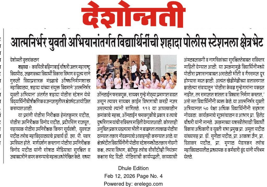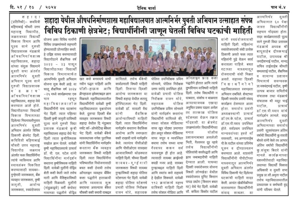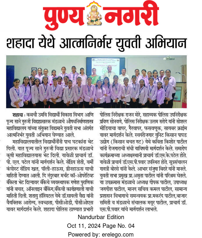 KBC NMU Student Development Section Jalgaon & PSGVPM COP Jointly Organized Self Reliant Young Woman Campaign (Aatmanirbhar Yuvati Abhiyan) 2024 -25