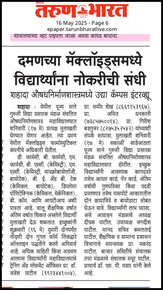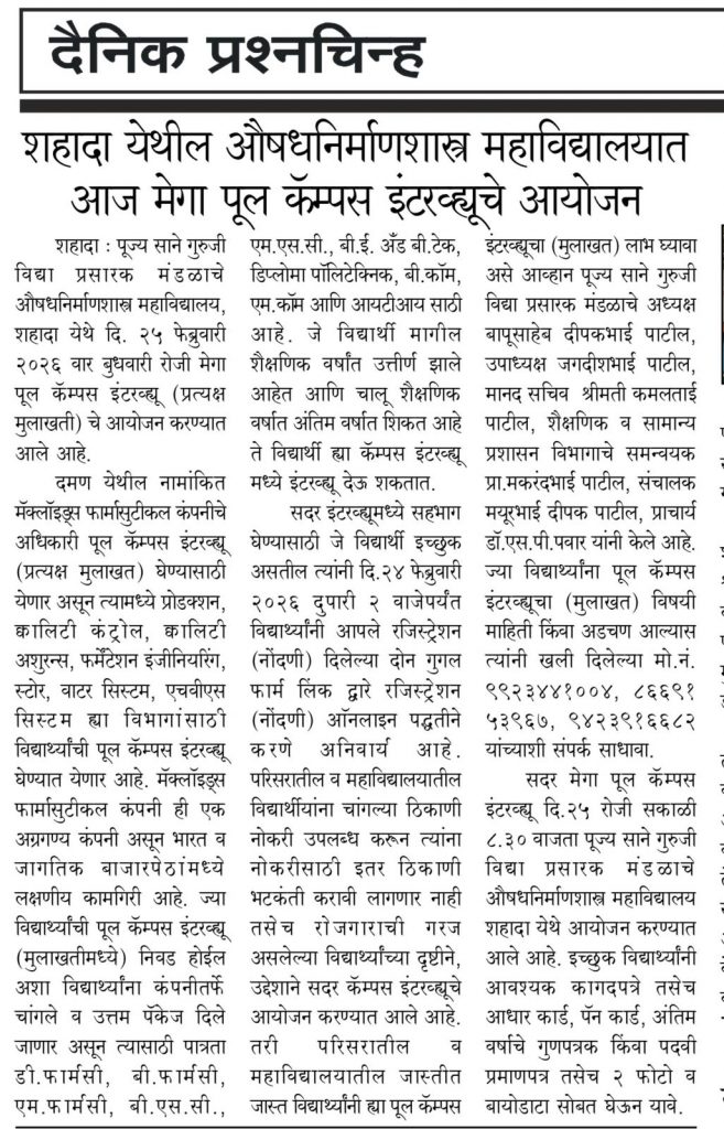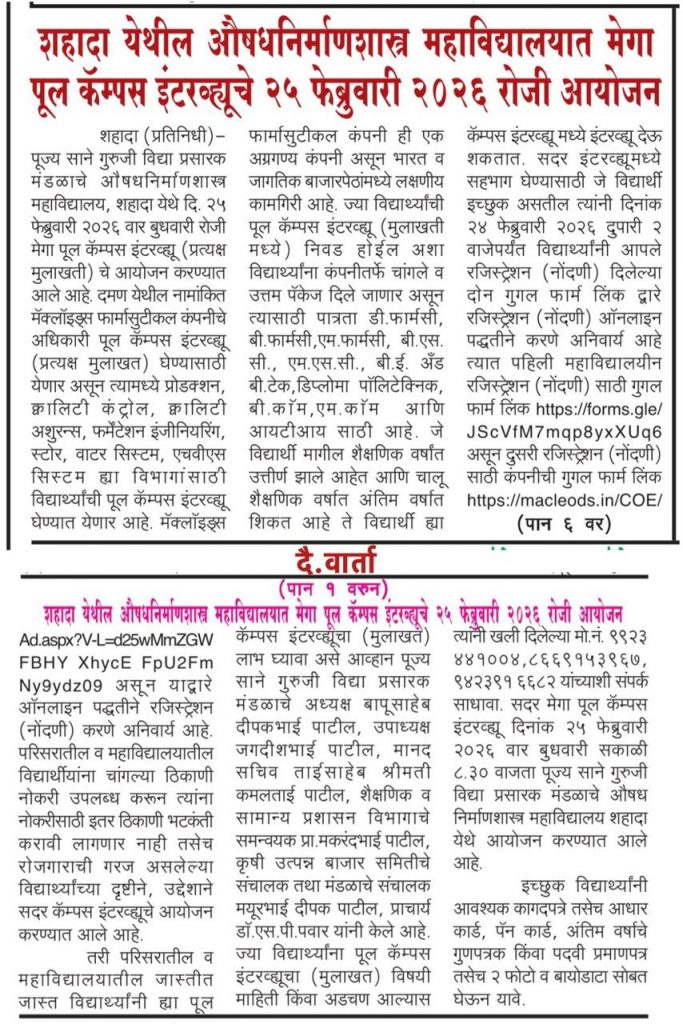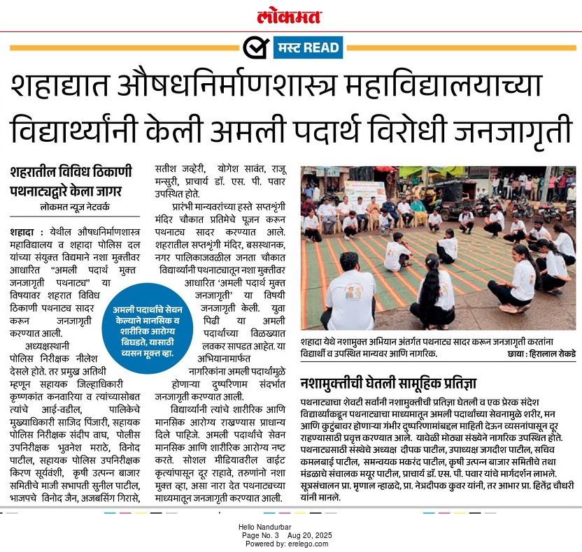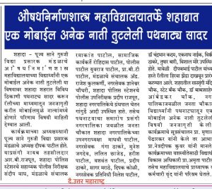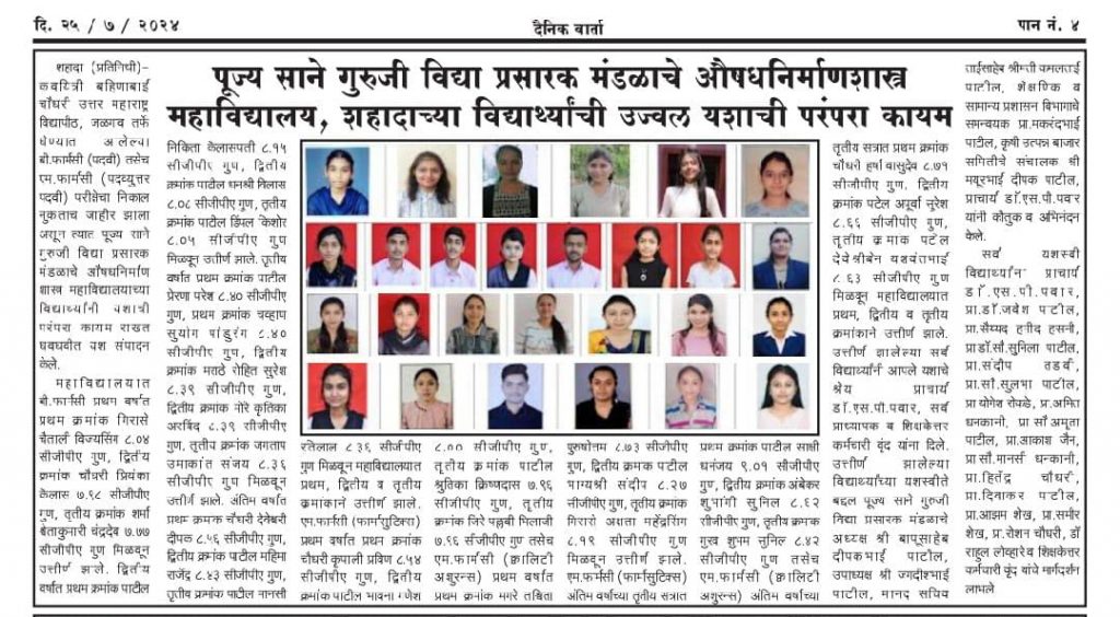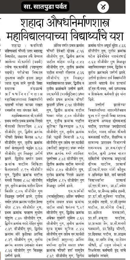 विद्यार्थ्यांनी डि. फार्मसी, बी. फार्मसी, एम. फार्मसीत राखली यशाची परंपरा कायम