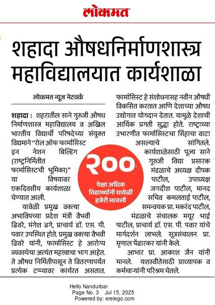 One Day Workshop On Role of Pharmacist in Nation Building 2024 -25
