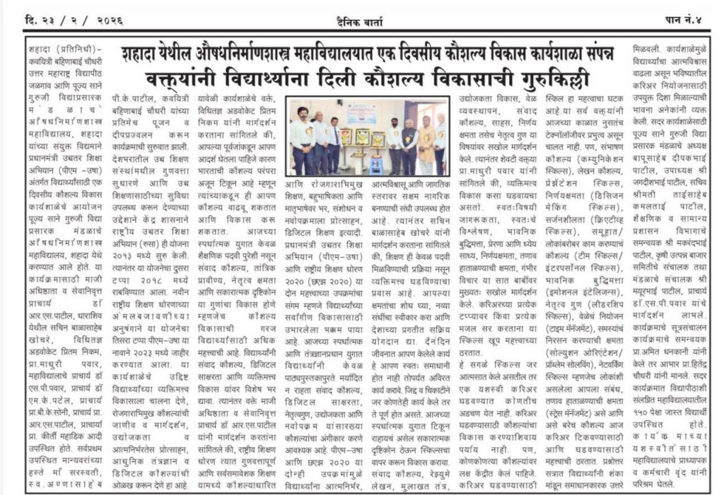 KBC NMU Jalgaon & PSGVPM COP Jointly Organized Under PM-USHA Program One Day Skill Development Program 2024-25